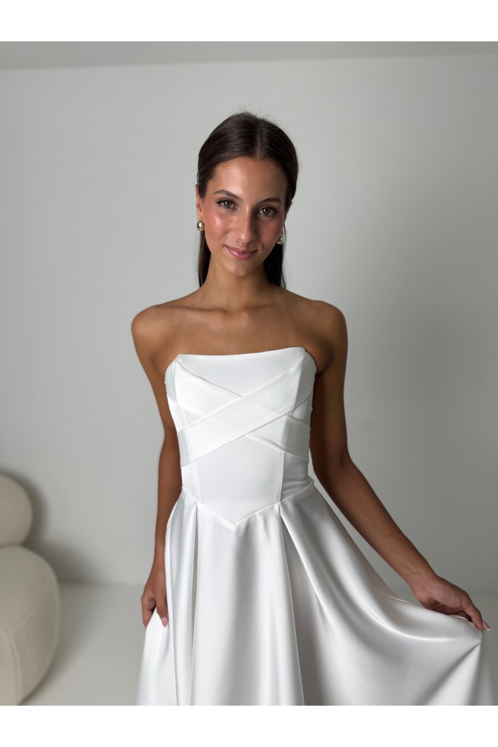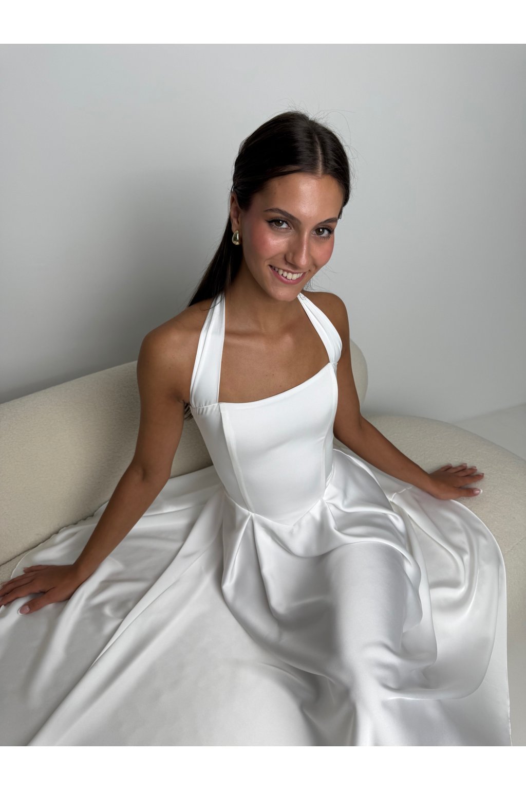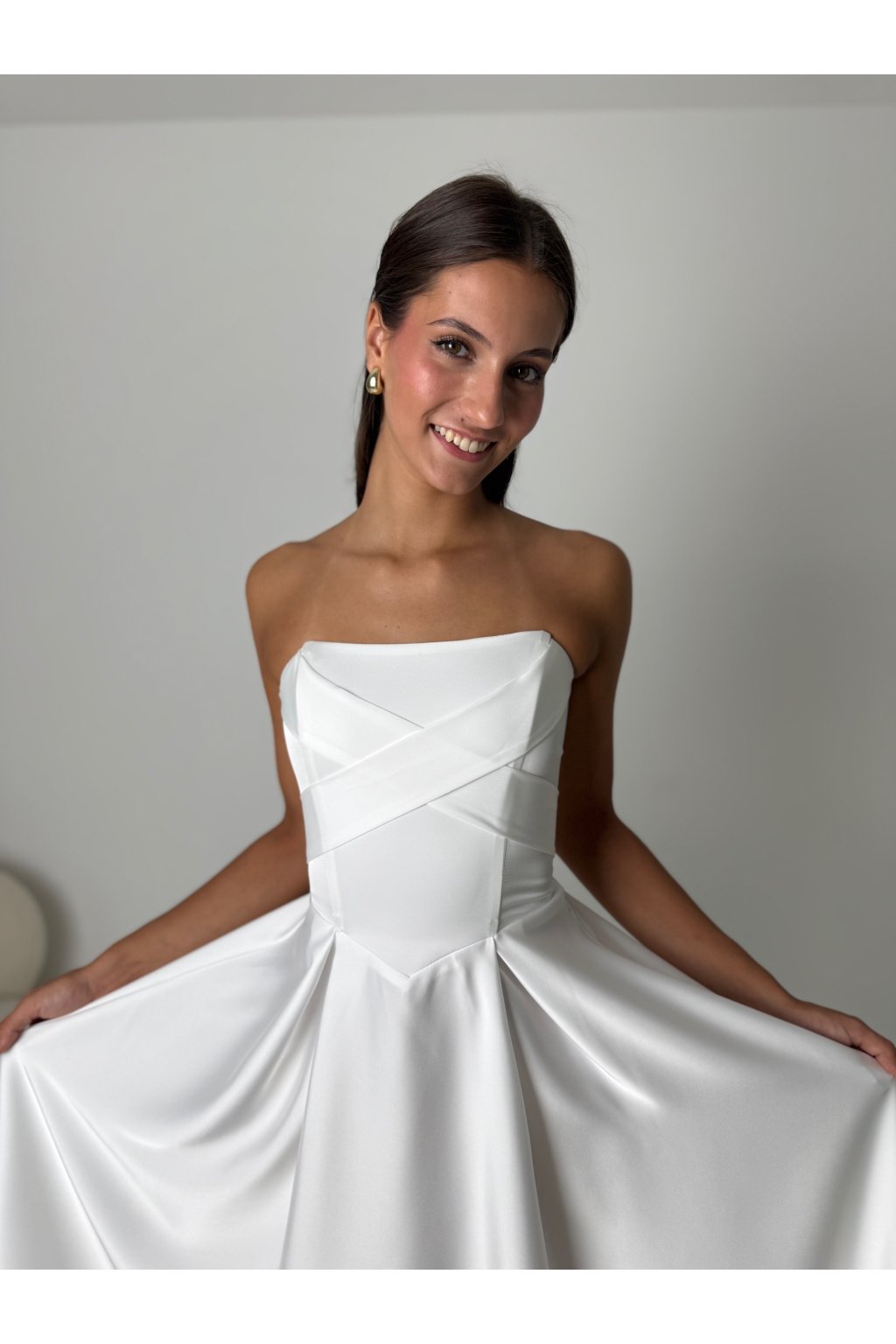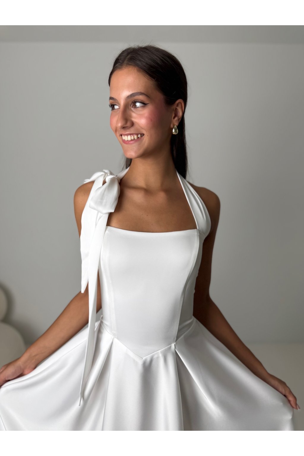 Tyto elegantní společenské šaty jsou perfektní volbou pro nevěsty jako popůlnoční šaty případně na jednoduchý svatební obřad, ať už tady nebo u moře. Na rozlučku se svobodou, na líbánky apod.