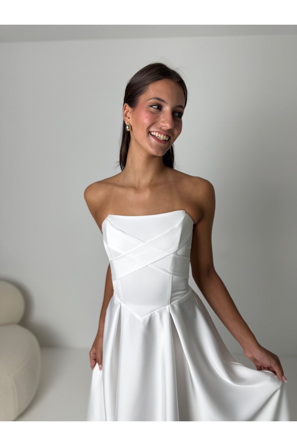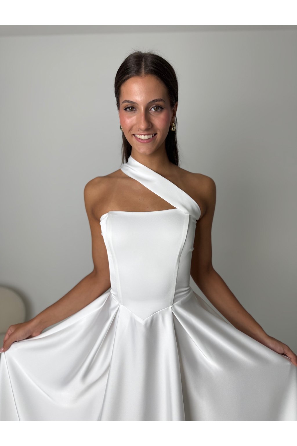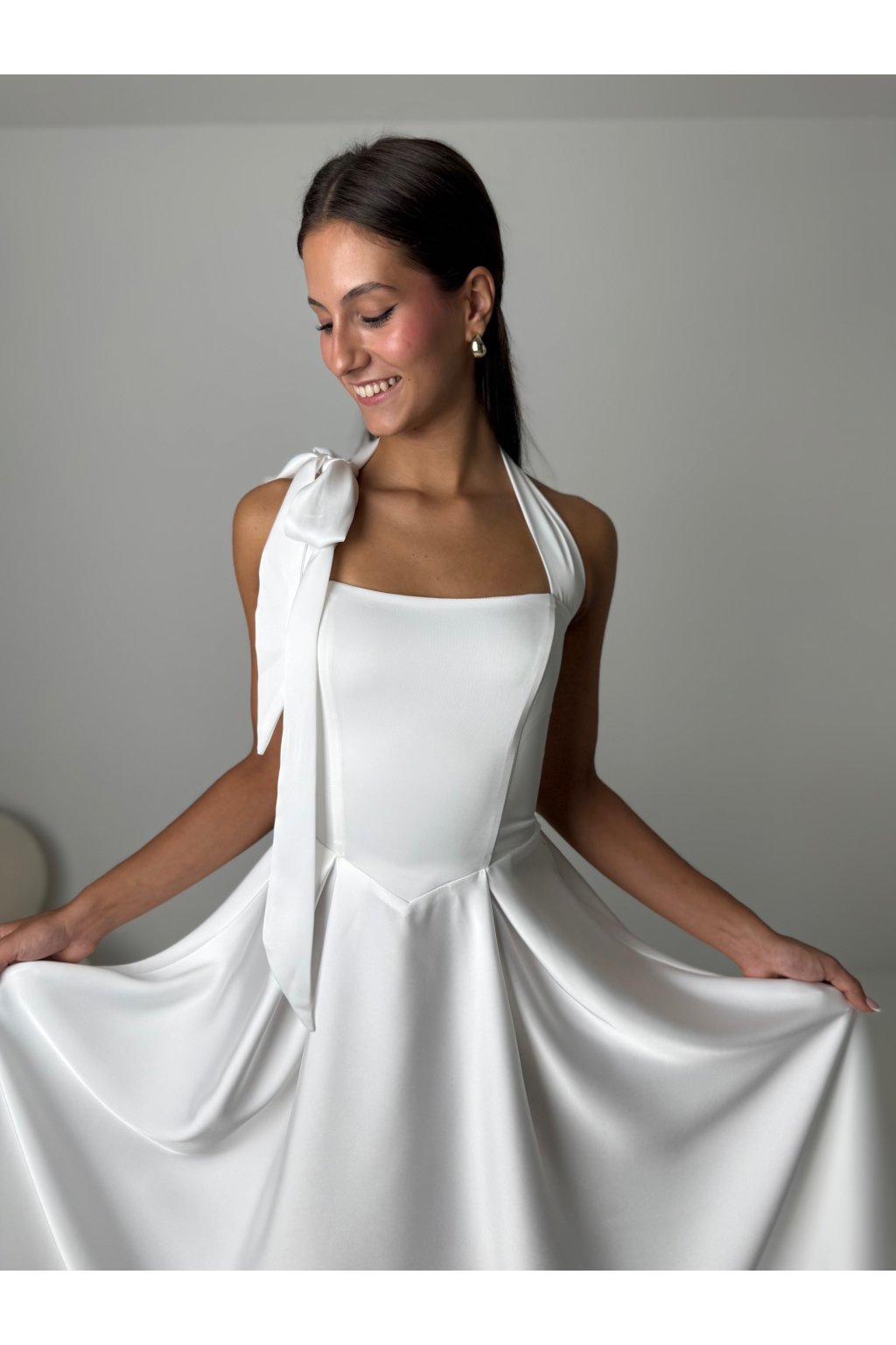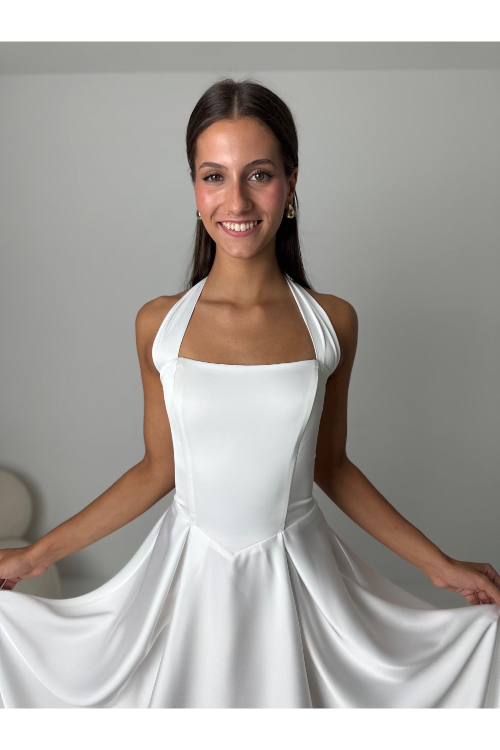 Tyto elegantní společenské šaty jsou perfektní volbou pro nevěsty jako popůlnoční šaty případně na jednoduchý svatební obřad, ať už tady nebo u moře. Na rozlučku se svobodou, na líbánky apod.