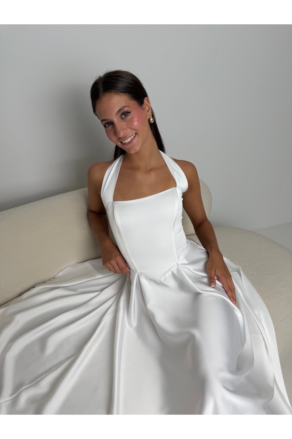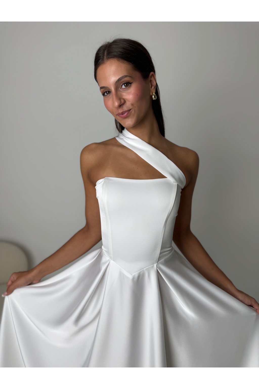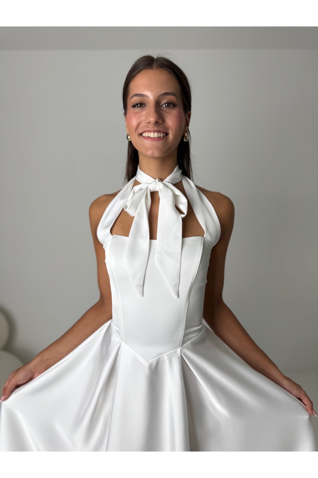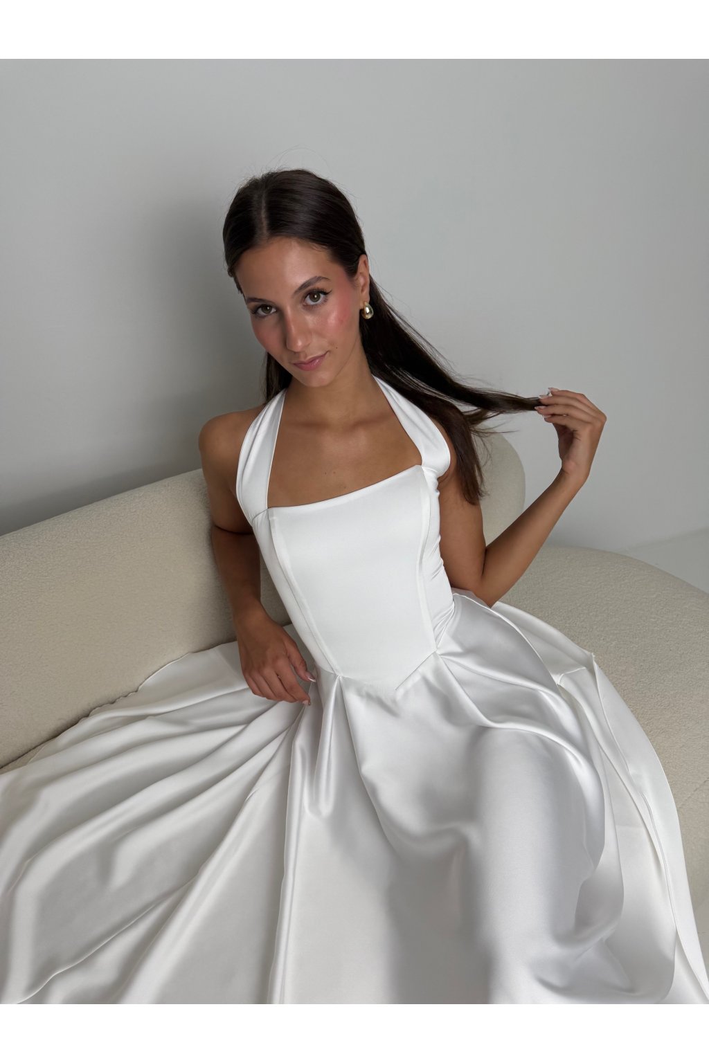 Tyto elegantní společenské šaty jsou perfektní volbou pro nevěsty jako popůlnoční šaty případně na jednoduchý svatební obřad, ať už tady nebo u moře. Na rozlučku se svobodou, na líbánky apod.